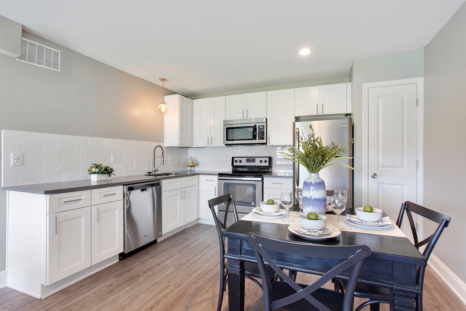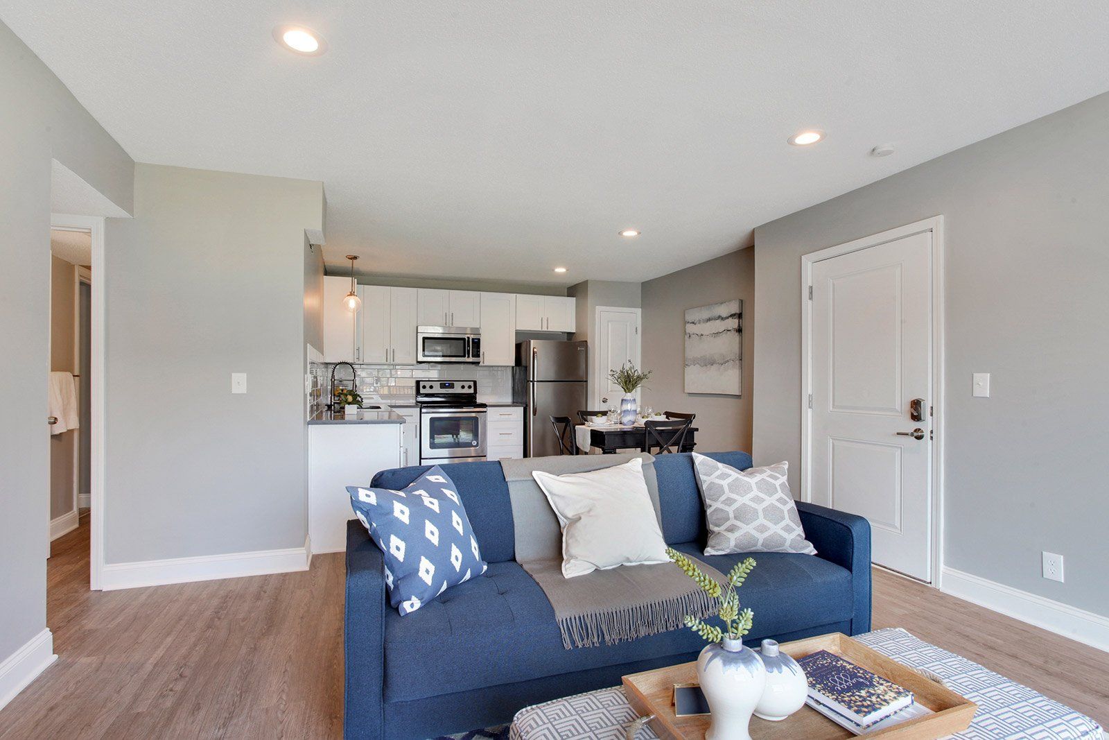 Large open concept kitchen with new stainless steel appliances including dishwasher and garbage disposal. New vinyl hardwood planking in kitchen and living space with new carpet in the bedrooms. Two large bedrooms with plenty of closet space! Units include patio and decks on 2nd and 3rd floors!