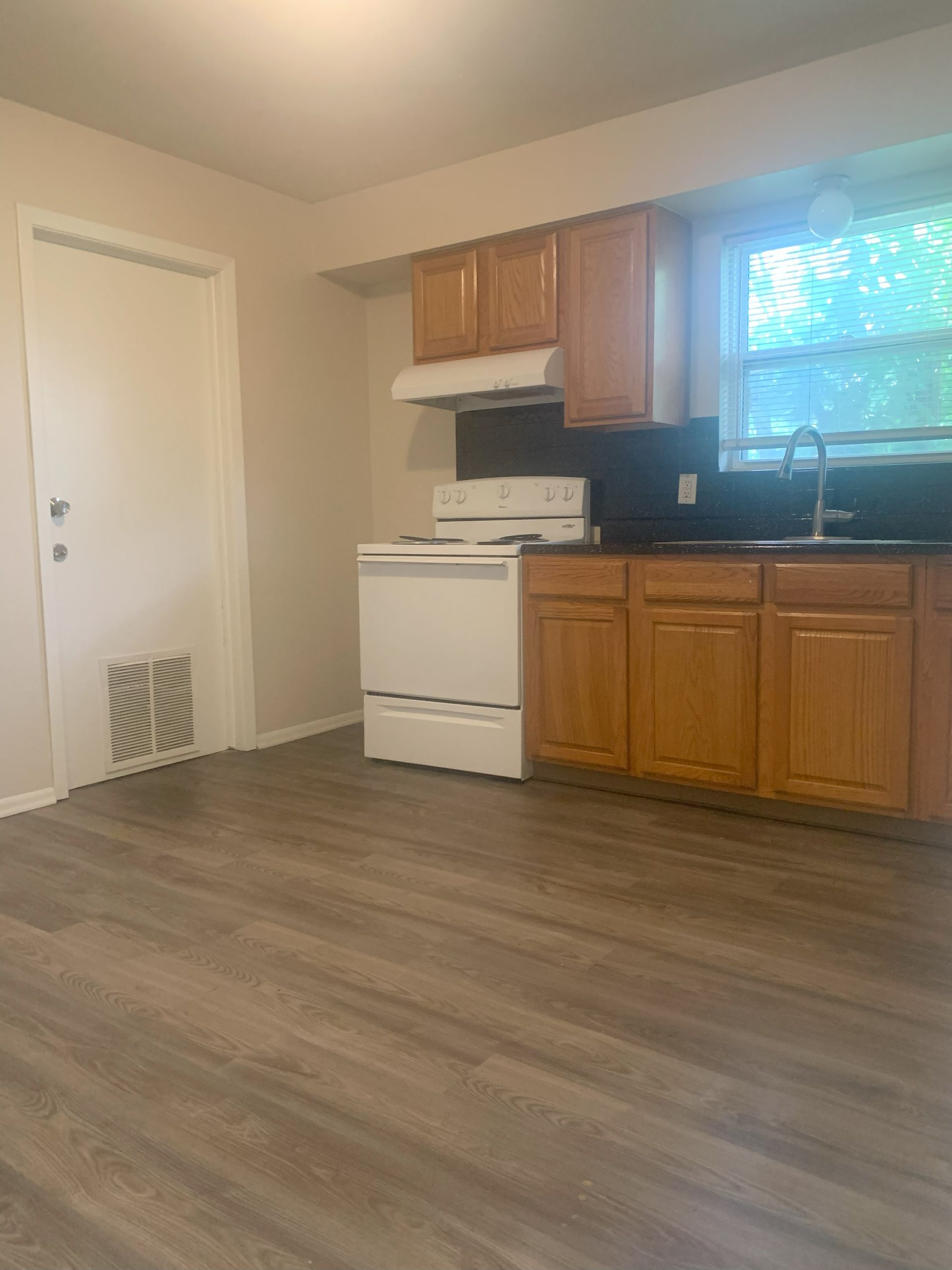 The spacious 2 bedroom/1 bathroom features plank flooring throughout and a large kitchen with plenty of room for dining. Washer and dryer hookups are available in a shared space, and the bathroom includes a shower/tub combination. Additional storage and central heating and air provide everyday comfort and practicality.