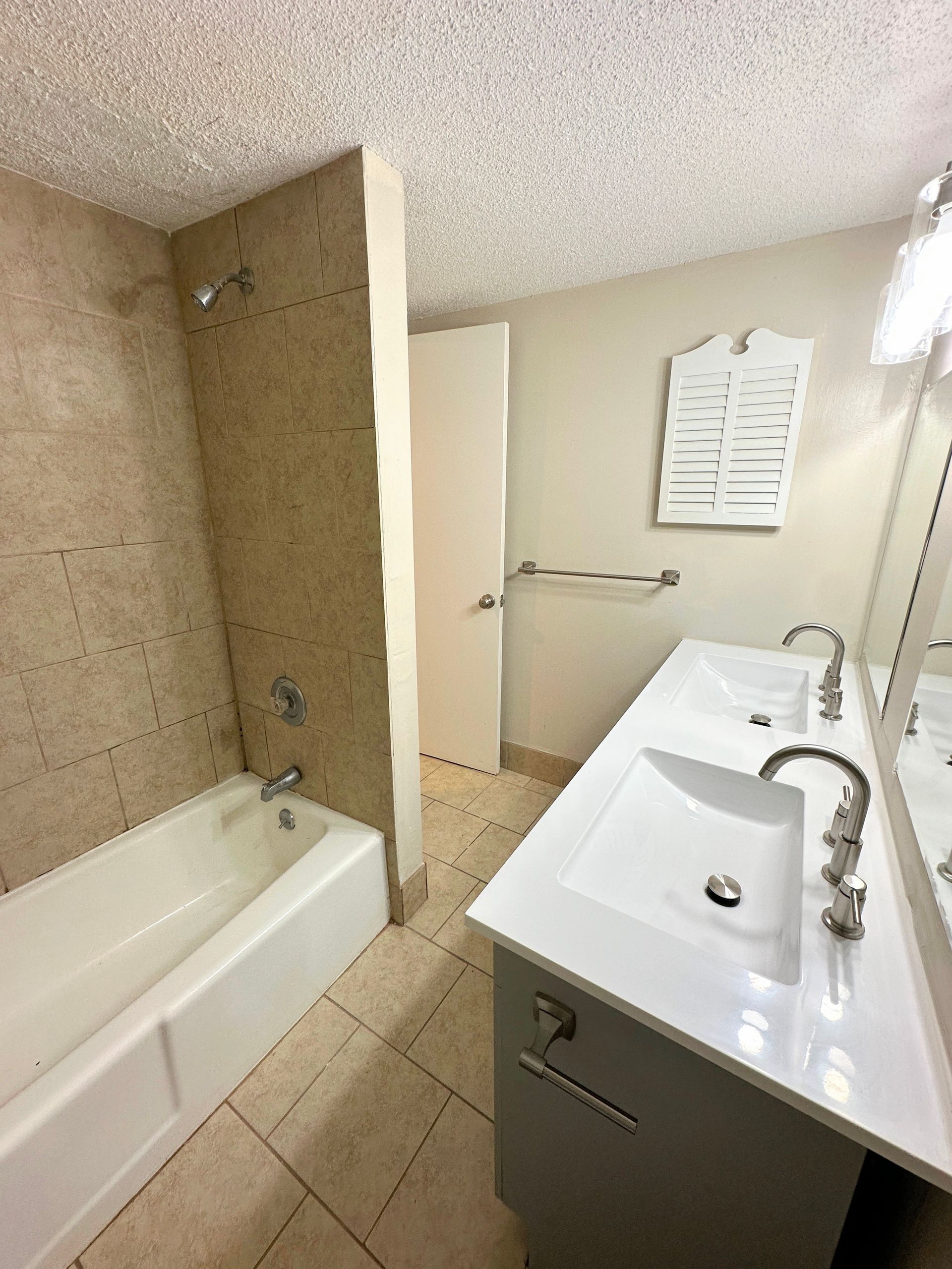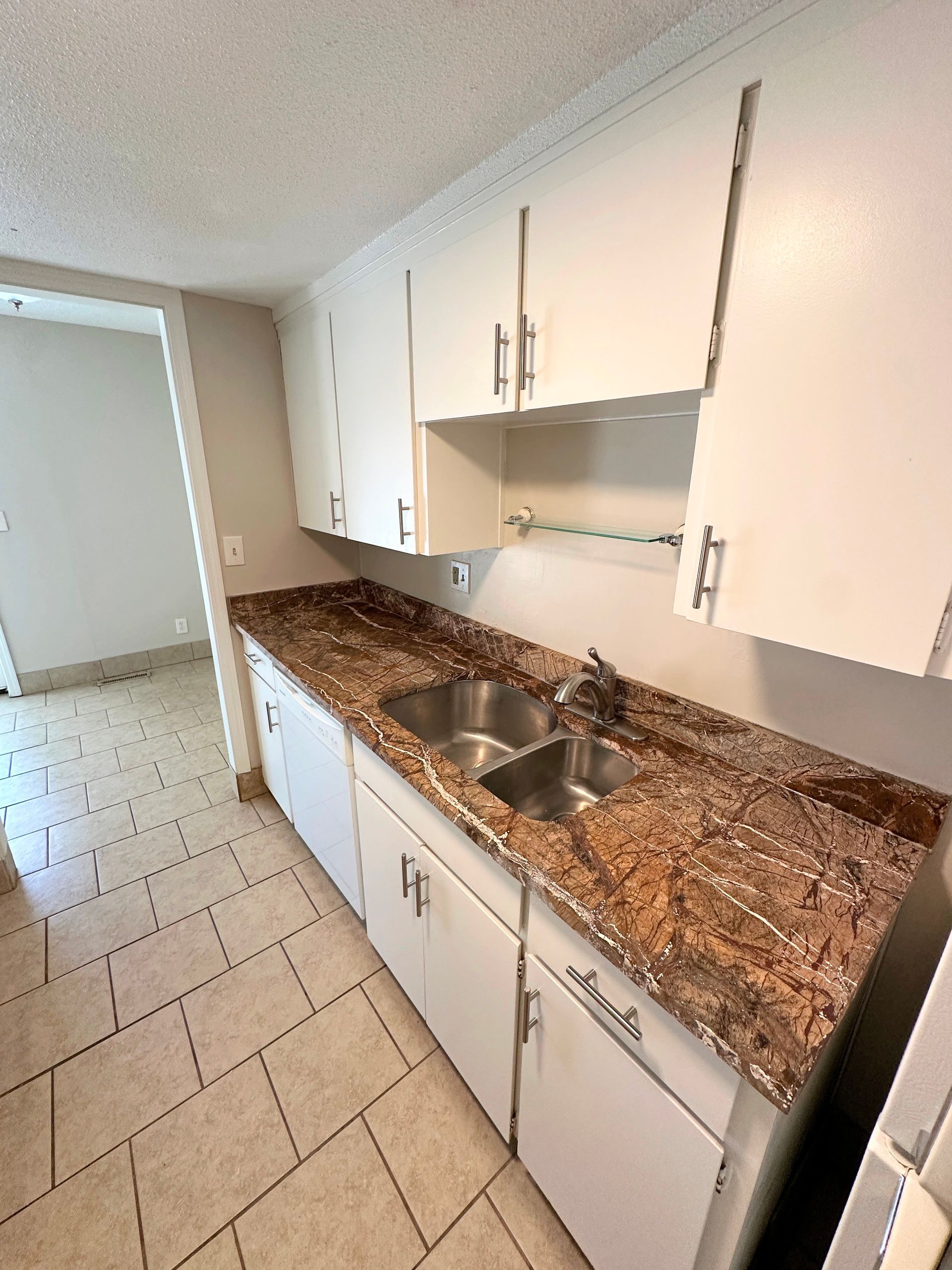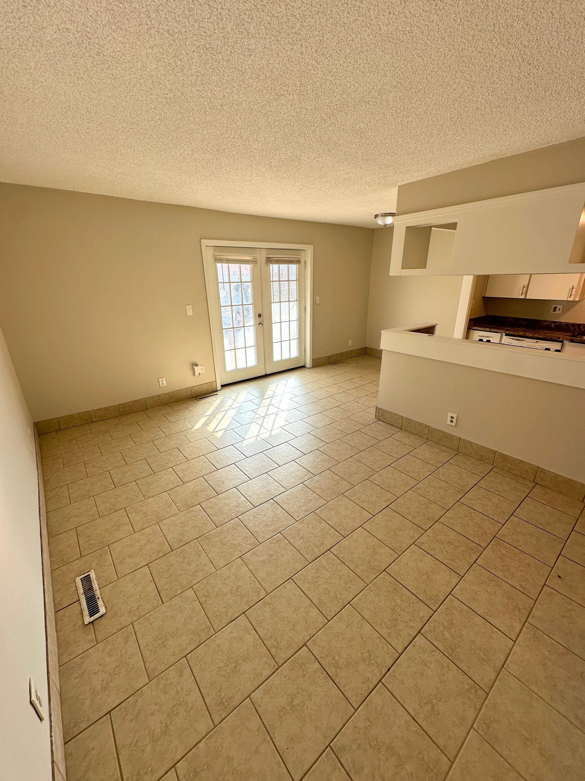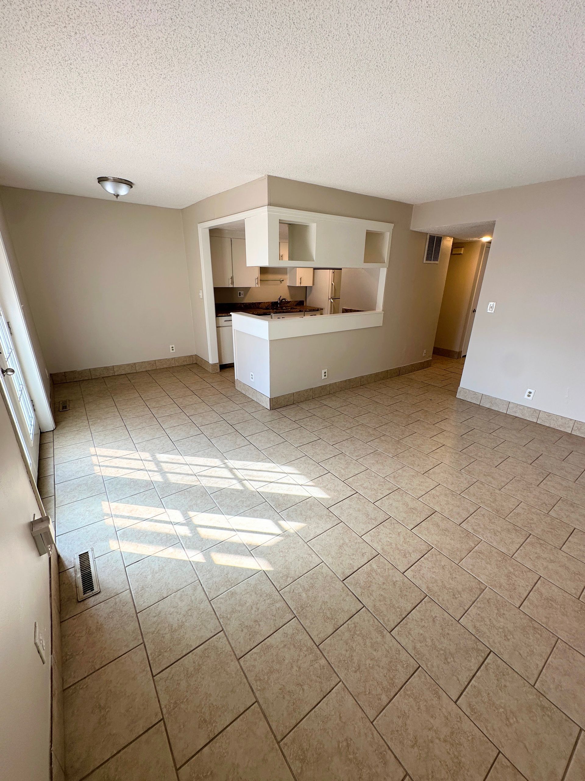 This 1BR features tile throughout and carpeted bedroom, spacious kitchen fully equipped with microwave, dishwasher, and gas range, separate living and dining area, new double vanity in the bathroom, double closets in the bedroom, plus two additional storage closets and central heat/air. French doors leading to the shared patio space overlooking the pool!